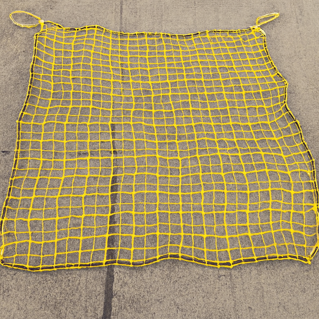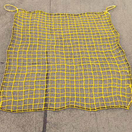 Measuring 1.5m x 1.5m, this is a knotted made with 6mm diameter rope for the mesh, and the mesh size is 100mm. Additionally, there is an overlay net with mesh size approximately 45mm. This facilitates containment of some smaller items.