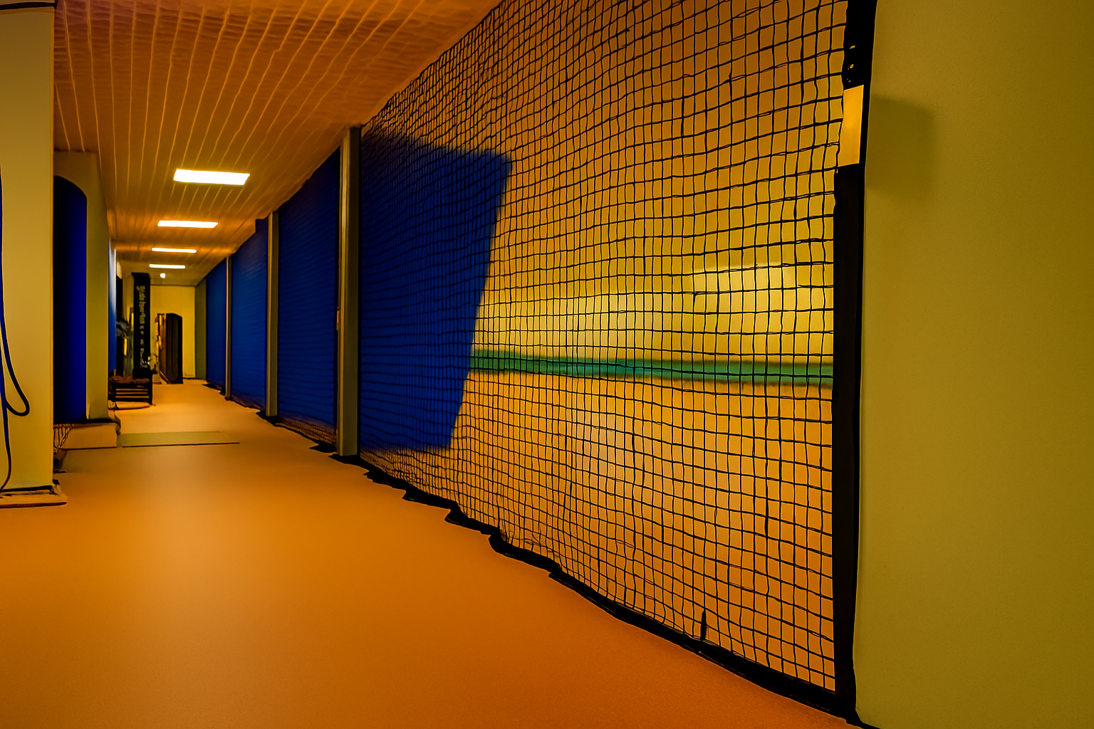 High-quality knotless netting with a leadline base keeps the net securely in place during play, preventing movement when balls hit the surface. Designed for both indoor and outdoor use, it is most commonly used indoors to divide tennis practice courts.