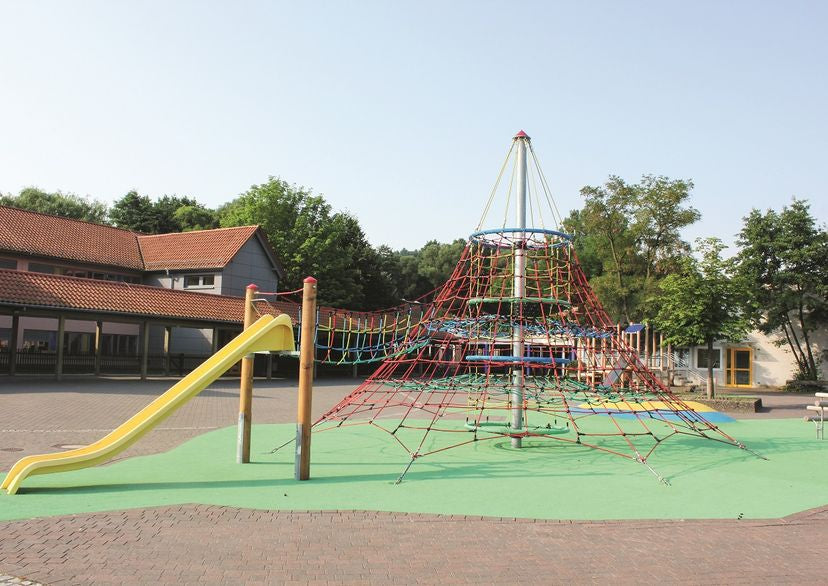 DINO 1 is a large rope play structure with a stainless steel slide, designed for adventurous children aged 6 and up. Built using high-strength steel-core Hercules rope and weather-resistant steel components, it's ideal for schools, parks and large playgrounds seeking a dynamic, durable climbing solution.