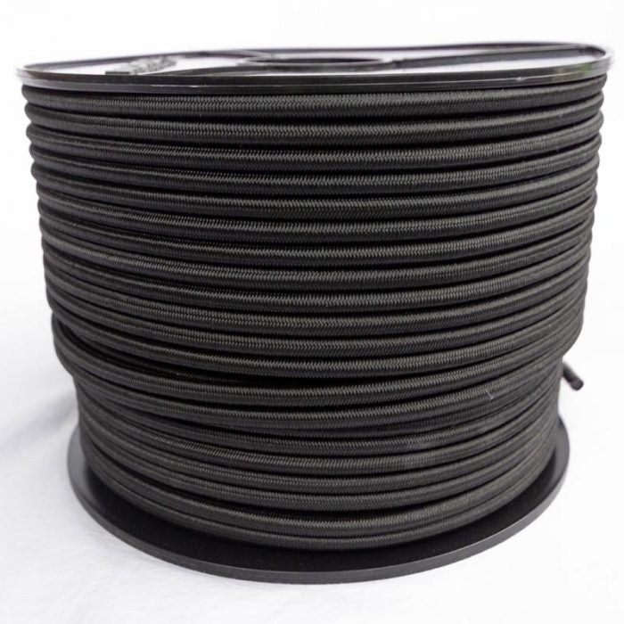 A 50m roll of 12mm diameter Black Monoflex Bungee / Shock Cord.