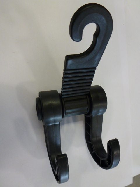 These tough larger-style plastic hooks have one hanger and a double hook. The dimensions of the hook are: 190mm (length) x 80mm (width) x 70mm (height) and this is a pack of 10 hooks.