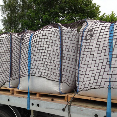 Extra Heavy Duty Cargo Net made from high tenacity knotless polypropylene with approximately 100mm mesh and 5mm twine diameter. Available in 2 sizes, these nets have a 12mm border rope and 4 tie ropes in each corner. Additionally, the netting is UV stable, and has reinforced edging, which makes it ideal for heavy outdoor use. Please contact us for bespoke sizes or requirements.