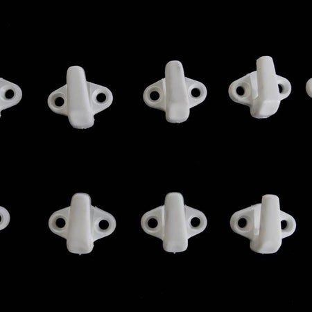 A pack of 10 white Nylon J Hooks for the retention of bungee cords up to 8mm in diameter. Ideal for retaining items such as elasticated nets and tarpaulins.