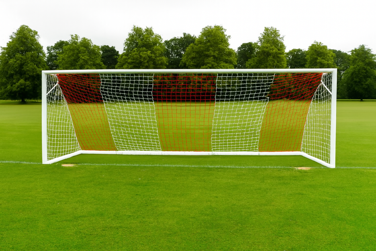 What sets this net apart is its bold two-colour vertical stripe design, running cleanly from top to bottom. The vibrant pattern adds visual impact to matchday setups and training environments alike.