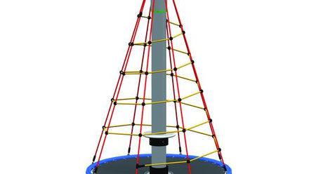 Spiral Carousel is a spinning rope play unit for children aged 6+, featuring a 3.8m steel mast and a circular net base for climbing and balance. Made from Hercules rope and galvanised steel, it’s perfect for schools, parks, and playgrounds.