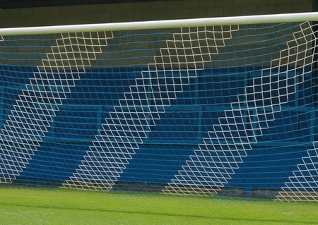 Single Full Size Continental Football Goal Net 24ft 7in x 8ft 2in - 2 Colour Diagonal Stripe