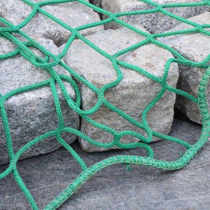 A 5m x 5m Extra Heavy Duty Cargo Net complete with a 12mm border rope and 10 tie ropes (2.5m long). These nets are ideal for use in construction, farming, transportation, warehousing, waste management industries.