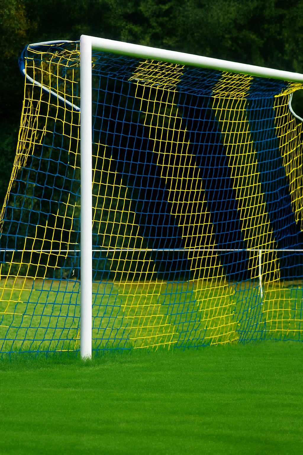 These full-size continental football goal nets are made from 4mm knotless polypropylene with a 120mm mesh, offering superior durability and impact resistance. Designed for goals measuring 24ft 7in (W) x 8ft 2in (H) x 2ft 7in (Top) x 6ft 6in (Base) (7.5m x 2.5m x 0.8m x 2m), they’re weatherproof, UV resistant and feature a bold two-colour diagonal stripe design.