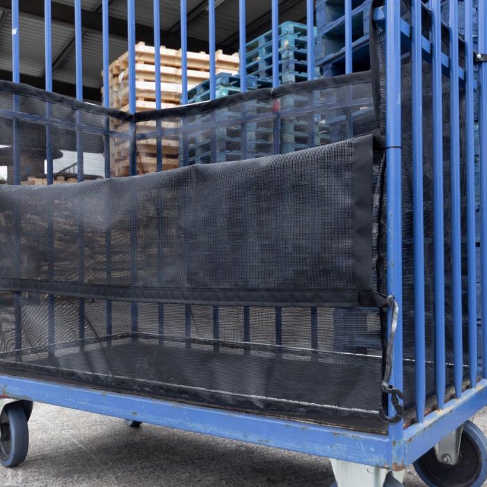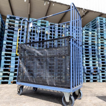 Custom designed to fit within large warehouse roll cage trolleys that measure 127cm wide by 60cm deep. The netting extends 85cm high within the trolley, and helps keep items in the trolley and off the floor. The design only incorporates high quality, durable materials that are tried and tested in busy warehouse environments. Custom sizes and designs are available on request.